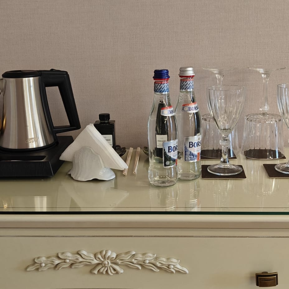 Oaspeții se pot bucura de o zonă de relaxare bine amenajată, mobilier tapițat elegant, noptiere iluminate, aer condiționat, televizor, minibar și Wi-Fi gratuit. Mochetă cu model clasic subliniază statutul camerei și nivelul ridicat de confort.