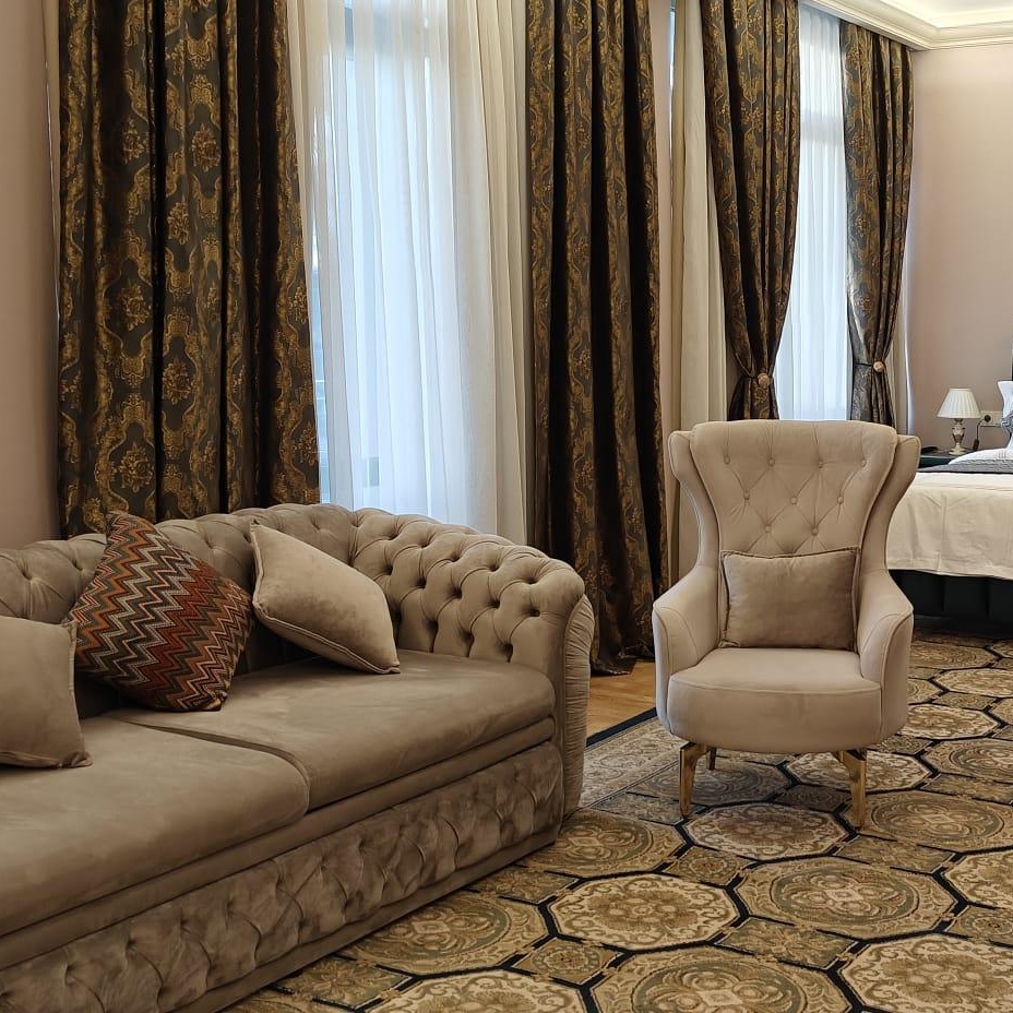 Suita VELOUR este o cameră spațioasă și elegantă, concepută pentru un sejur confortabil și relaxant. Interiorul este decorat în tonuri calde și rafinate, cu accente din velur și mobilier clasic, creând o atmosferă de eleganță atemporală.
